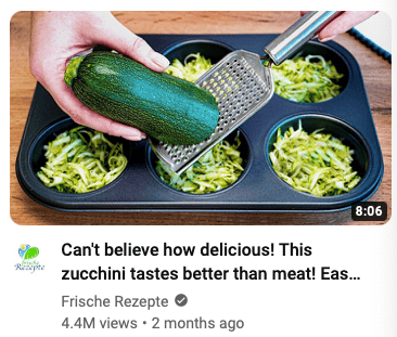 And then without realizing it, I am 2 minutes into an 8-minute video about zucchini tasting better than meat (4.4M views – what???).👇